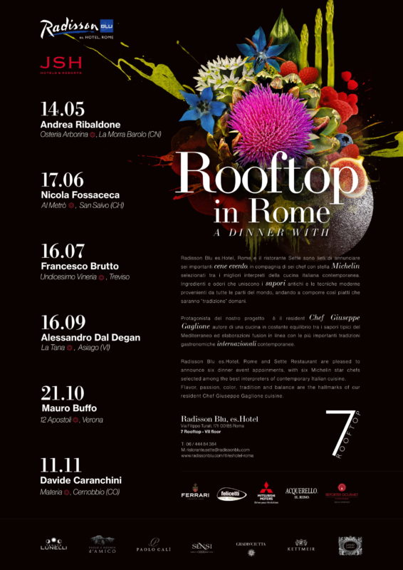Radisson Blu es.Hotel, Rome e il ristorante Sette lanciano un programma di sei cene stellate, in ogni appuntamento lo chef resident Giuseppe Gaglione realizzarà una cena a quattro mani ospitando un collega proveniente dalle migliori cucine italiane.
