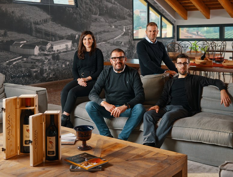 Oggi alla guida della cantina ci sono la terza e la quarta generazione: insieme producono vino solo dalle proprie vigne che ricoprono un totale di 130 ettari, con il rigido controllo di ogni passaggio della filiera e scelte concrete in termini di sostenibilità (nella foto di apertura da sinistra Elisa, Stefano, Andrea e Mattia Cavazza).