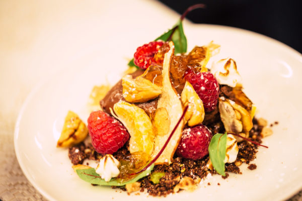 Cocktail di melone bianco invernale e schiuma di birra con la Watermelon Weiss (a base di succo di cocomero): un gustoso sorso che rievoca l’estate da accompagnare al melone bianco per avvicinarsi all’inverno. A tutta birra farro e Oriente con l’Equilibrista: farro marinato con mosto di birra Duchessa (l’ottima birra al farro) per un piatto agrodolce e orientaleggiante che si rivela pian piano, sorprendentemente, e altrettanto evocativo è l’abbinamento con L’Equilibrista (Italian Grape Ale), brassata con mosto di Sangiovese. Poi Pane e terra: (mega) pagnotte d’autore, una con all’interno un coscio di maiale e l’altra una faraona in crosta accompagnate da un’insalata di faraona disossata con verdure, rape e castagne. Un filo sottile e sotterraneo, intrigante e bizzarro lega il tutto all’Etrusca, birra ispirata alle antiche bevande fermentate, brassata con nocciole, melagrana, resina naturale, miele…fermentata in anfore di terracotta…scende fin sottoterra nei ricordi aromatici. Tanto per gradire una mela cotogna cotta con pane e faraona al miele, cannella e fava tonka. Chiude la Brigante, una ale affinata in botti di brandy con miele e foglie di limone, abbinata alle pizze di Bonci, titolo: Quando il Mediterraneo si ubriaca di birra: tonno, capriolo e frutti di mare, un susseguirsi di sensazioni tra bosco e mare. Quindi un eccezionale Panpepato, cioccolato, gelatina di birra, frutta essiccata …e altre variopinte golosità
