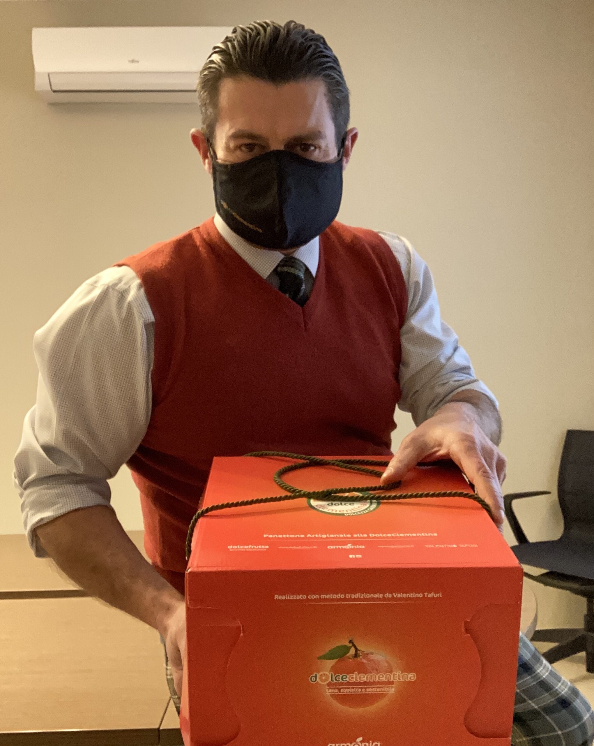 Natale di solidarietà per la Op Armonia. L’Organizzazione di Produttori Ortofrutticoli, leader nell’ortofrutta italiana, donerà 400 panettoni “gourmet” a base di DolceClementina® agli operatori sanitari in servizio al Centro Covid di Eboli, all’Usca e al centro operativo del Servizio Sanitario di Urgenza ed Emergenza Medica (118) di Battipaglia. I panettoni, realizzati artigianalmente dal pizzaiolo campano Valentino Tafuri sono preparati con uno dei prodotti di punta dell’azienda: la DolceClementina®, selezione Gourmet di frutti provenienti esclusivamente dalla costa jonica calabrese, lucana e pugliese, tra le zone più vocate d’Italia per la coltivazione di questo frutto. Accanto a questa iniziativa OP Armonia ha anche lanciato un’iniziativa rivolta ai consumatori, realizzando una mascherina di qualità, in doppio tessuto, cotone e Tnt, sanificata e lavabile, chiamata “DolceClementina”. Tali dispositivi di protezione, oltre ventimila, verranno distribuite gratuitamente nei cestini di clementine in vendita nelle catene della grande distribuzione organizzata in tutta Italia.
