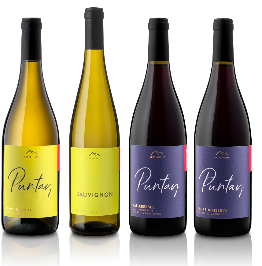 Sposare il vino al cibo è un esercizio che facciamo a casa o al ristorante, magari aiutati da un sommelier. Noi siamo riusciti a godere di una perfetta proposta di abbinamento stando molto lontani da chi l’ha pensata e con grande maestria. Da una parte Andrea Moser, enologo della cantina Erste+Neue, e quattro suoi vini, Pinot Bianco Puntay, Sauvignon, Lago di Caldaro Puntay e Lagrein Riserva Puntay; dall’altra Stephan Zippl, chef del Restaurant 1908 del Parkhotel Holzner, ha realizzato quattro piatti, la cui composizione è stata demandata a noi fruitori della degustazione, avendo a disposizione tutte le componenti di ogni preparazione, riposte in contenitori sottovuoto. Una bella sfida, che i due attori, Andrea e Stephan, hanno vinto riuscendo a portarci in un viaggio virtuale tra le montagne altoatesine.