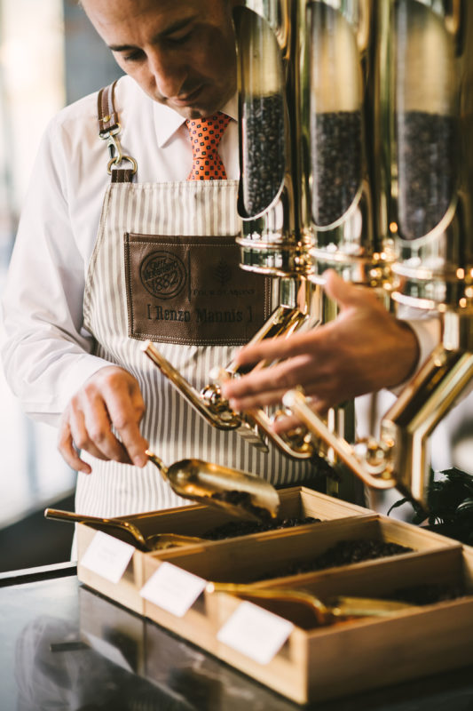 E’ possibile creare una miscela totalmente personalizzata, scegliendo l’estrazione più apprezzata tra quelle internazionali proposte – Turkish Coffee, French Press, Gina Goat, Chemex, o Syphon – e tra le diverse varietà disponibili, India Kaapi Royal, Colombia Excelso Washed, Ethiopia Natural Sidamo, Uganda Natural.