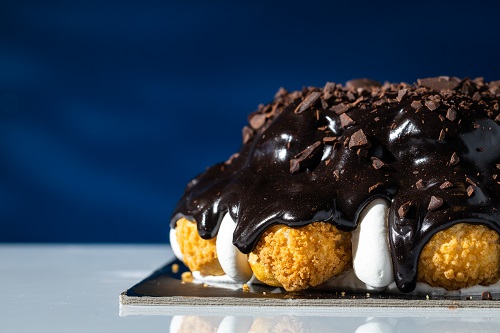Marco De Bellis è tutt’altro che neofita del settore pastry. Infatti i suoi inizi nel mondo della pasticceria risalgono al 2011, anno in cui insieme al fratello Andrea gestiva un piccolo laboratorio di monoporzioni da distribuzione. Da lì a poco arrivarono altre importanti avventure imprenditoriali: l’apertura della pasticceria a Campo de’ fiori e poi al Mercato Centrale della Stazione Termini. Oggi il pastry chef De Bellis arriva da Giano Bistrot con una indiscussa maturità professionale con la quale accoglie in toto la filosofia della proprietà e il concept dell’insegna. Porta però a Monteverde il suo bagaglio fatto di sapienza tecninca e di diversi dolci signature. Eccone alcuni: Paris Brest (dolce tipico francese pensato per ricaricare di energia i ciclisti con un disco di pasta choux ripieno di muesli alla nocciola in vari formati), il suo personalissimo Profiterole (pasta choux ripiena di crema pasticcera alla vaniglia, chantilly e glassa al cioccolato fondente). Ma anche l’Assoluto (mousse di cioccolato fondente al 70% con ganache al cioccolato fondente e, alla base, biscotto morbido cacao e nocciola) e Maria Antonietta (mousse di cioccolato bianco e vaniglia con gelè di lamponi e biscotto alle mandorle).
