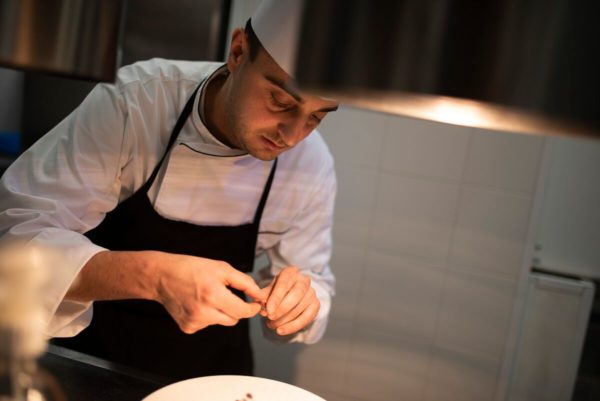 Citazioni romane che non possono mancare e piatti simbolo della classicità mediterranea rivisitata secondo uno stile fatto di semplicità e memoria, intuizione e storia, concretezza e creatività equilibrata, stagionalità dei prodotti, tecniche di cottura leggere nel pieno rispetto e valorizzazione della materia prima. Un mix di tradizione e contemporaneità. Emblematico ll Vizio del Marinaio, sandwich di spigola, scarola ripassata, lattuga di mare e caviale. Tra i grandi classici dello chef c’è Porgi l’altra guancia, stracotto di guancia su crema di carote speziate e nocciole del viterbese. Sapienza nella scelta delle materie prime rigorosamente del territorio, le verdure dell’orto, le paste artigianali.