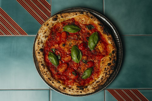 “Mi piacciono i fritti e li apprezzo quando sono in pizzeria, da cliente. Ma nelle mie pizzerie, tanto a Roma quanto a Vienna ho deciso di non includerli perché spesso, anche inconsapevolmente, precludono la degustazione della pizza che invece voglio sia sempre la protagonista principale del pasto” spiega. Al posto dei fritti ci sono degli antipasti che assolutamente non li faranno rimpiangere, come la tartare di manzo, foglie di cappero e nocciole oppure il carciofo ripieno con fondo di cipolle, acciughe e pecorino. In verità, per chi proprio non vuole fare a meno del fritto, ci sono tre montanarine (la tipica pizza fritta napoletana): la classica con pomodoro, quella con acciughe e limone femminiello e infine la montanarina che fa un omaggio alla Capitale con caciotta romana, levistico e lardo di Colonnata. Si chiude in dolcezza con dessert golosi come mango e caffè, pizza dolce con mou di zucchine, ricotta e anacardi caramellati ed un tiramisù reso ancora più goloso dall’aggiunta di un poco di crema di nocciole in quella al mascarpone.