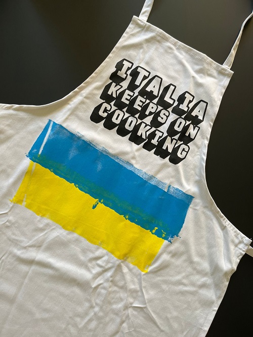 I grembiuli di ITALIA KEEPS ON COOKING si tingono dei colori giallo e blu della bandiera ucraina e diventano uno strumento per supportare concretamente la popolazione duramente colpita dalla guerra esplosa nei giorni scorsi. La campagna social, ideata nel 2020 dal team dell’agenzia Alessia Rizzetto PR & Communication, specializzata in ambito food & beverage, e nata inizialmente con l’intento di sostenere il comparto della ristorazione in seguito alle chiusure forzate imposte dalla pandemia, ha generato un movimento d’opinione diventato ben presto virale, tanto da essere poi declinato di volta in volta al servizio di molteplici istanze charity.