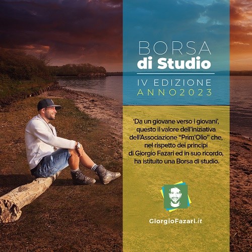 L’associazione Prim’Olio- Saperi e Sapori, rivolgendosi ai giovani talenti del settore agricolo, indice la quarta edizione della borsa di studio “Giorgio Fazari”, iniziativa nata per onorare la memoria di un giovane produttore di olio extravergine d’oliva, scomparso a seguito di un tragico incidente stradale.