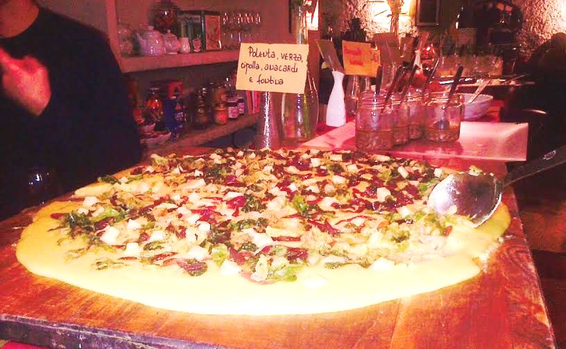Ketumbar Testaccio-1 anfore romaneTra le novità del brunch del sabato e della domenica, ad affiancare piatti di terra e di mare con ampia scelta vegetariana e vegana, un tris di polenta: polenta di cicerchie al cavolo nero saltato; polenta bramata con radicchio trevigiano, brasato e stracchino; polenta taragna all’arrabbiata. Un menu accattivante e sempre diverso, che propone anche vellutate, crema di zucca e liquirizia, lasagna di farro all’ortolana, carbonara vegetariana, coscio di tacchino con ripieno di verdure e prugne, cous cous con verdure, frutta secca e uva sultanina, hummus di ceci e green, bruschetta di mare (alici fritte, pomodoro del Pienolo infornato), strudel di farro con verdure e ricotta con broccoletti, origano e sesamo, plum cake salato alle verdure in foglia, farro ai fagiolini, cipolla rossa di Tropea, pomodori secchi e olive di Gaeta, focaccia e pizza ai 7 cereali.