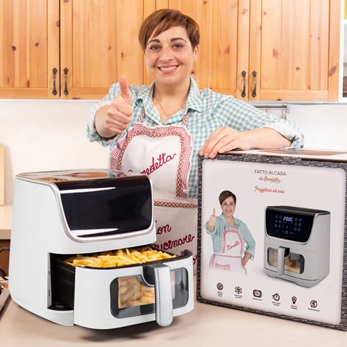 È proprio vero, il mondo della cucina casalinga si divide tra un prima e un dopo friggitrice ad aria! Sì lo sappiamo tutti che non è una friggitrice ma è un fornetto e che quindi non frigge… Ma cosa importa se poi il risultato è sorprendente? Questa che vi proponiamo è stata creata da Benedetta Rossi, star delle food influencer, e garantita da Kasanova. Pensata per cucinare ricette gustose leggerezza è un ottimo alleato in cucina e un’originale idea regalo per il prossimo Natale. Queta pensata da Benedetta Rossi è molto di più di una friggitrice! All’occorrenza è anche un piccolo forno per cuocere pane e torte fino a 22 cm di diametro. Si riscalda velocemente, è dotata di display touch intuitivo, di finestra e luce interna per il controllo a vista della cottura, comandi in italiano con ben 12 programmi preimpostati, 6,5 litri di capacità per cucinare comodamente fino a 6 porzioni. Disponibile nella versione bianca o nera al costo di 139 euro, è disponibile in esclusiva online su kasanova.com o negli oltre 800 punti vendita Kasanova presenti in tutta Italia.