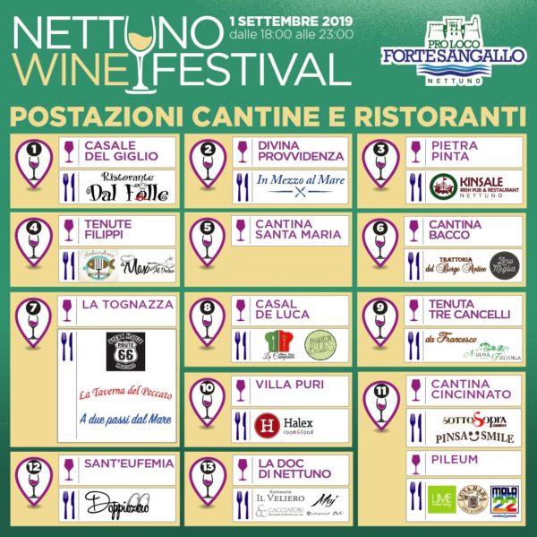 Una grande cantina a cielo aperto, dove il vino incontra la cucina di mare e di orto, ma anche la musica, la danza, il divertimento e lo shopping by night. E’ questo in sintesi l’identikit del Nettuno Winefestival, la grande manifestazione enogastronomica, organizzata dalla ProLoco Forte Sangallo, che domenica 1° settembre – per il secondo anno consecutivo – torna ad animare una delle località balneari più rinomate del litorale romano per valorizzare le eccellenze di questo tratto di territorio così come dell’intera regione.