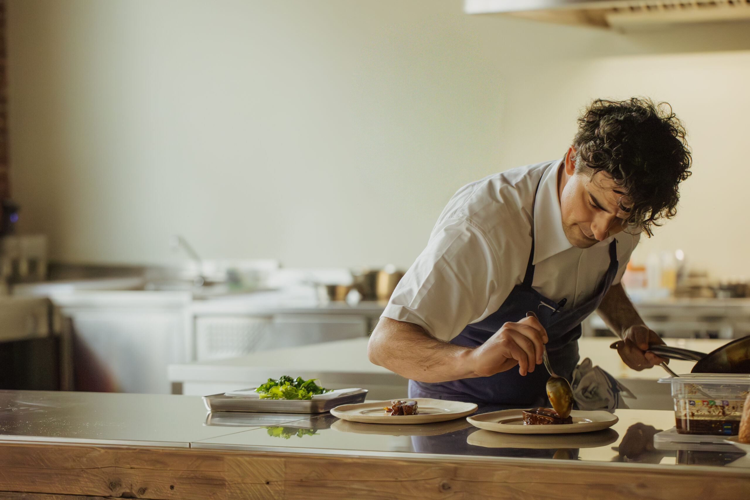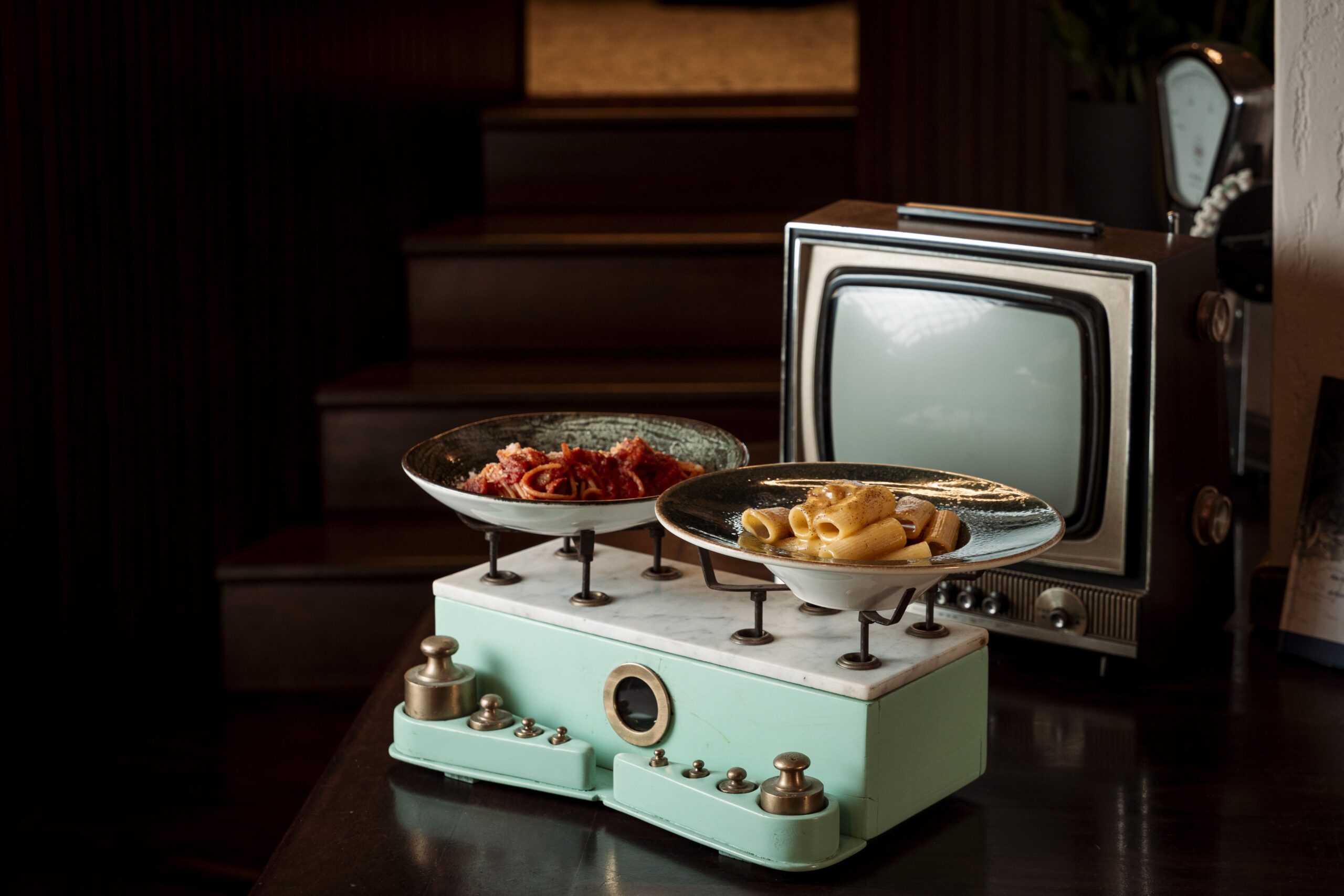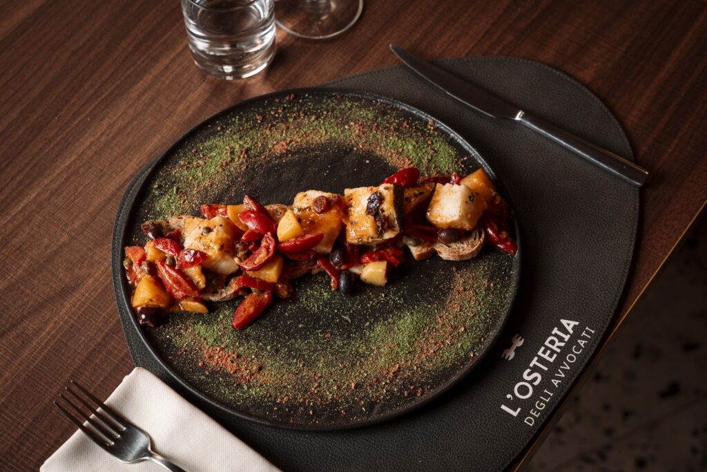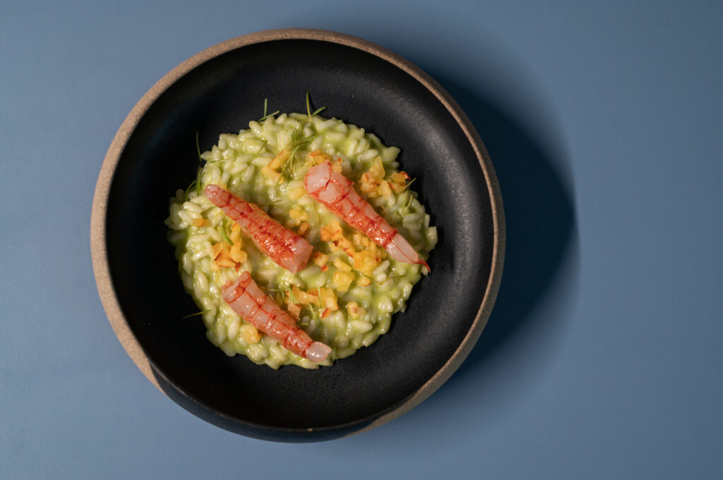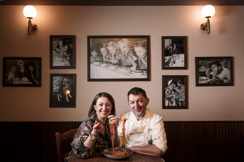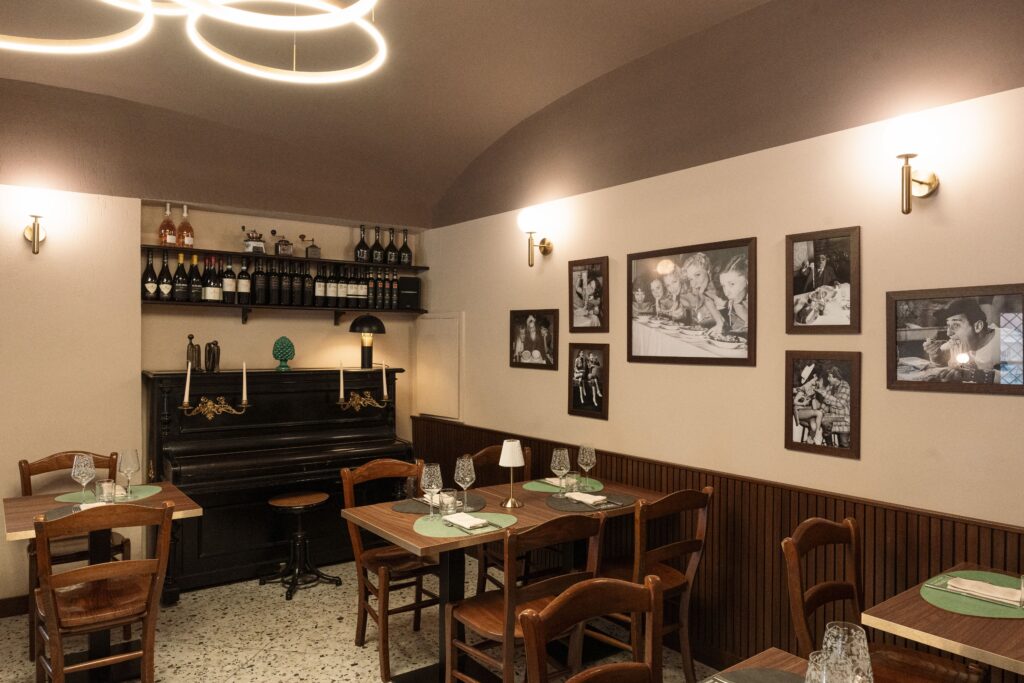 Il ristorante è aperto dall’aperitivo al dopo cena, con il pranzo servito nel weekend. L’esperienza è dinamica ma curata, con uno stile accogliente e giovane che riflette la filosofia del progetto. La proposta gastronomica è firmata dallo chef Simone Di Maria, 43 anni, con esperienze tra Italia ed estero. La sua cucina nasce dalla tradizione romana reinterpretata, con grande attenzione alla materia prima, alle consistenze e alle tecniche di cottura. In un menu che cambia stagionalmente, oggi compaiono piatti come le puntarelle con ricci di mare, maionese all’aglio e polvere di gambero rosso, il risotto broccoli, arzilla e bottarga, lo spaghettone Monograno Felicetti con stracciatella, ’nduja e tartare di gambero rosso, la guancia di manzo CBT con crema di patate, sale al lime e tequila nebulizzata, fino alle varianti stagionali sul porcino. I dolci sono tutti fatti in casa, dal tiramisù rivisitato alla crostata ricotta e visciole interpretata dallo chef.