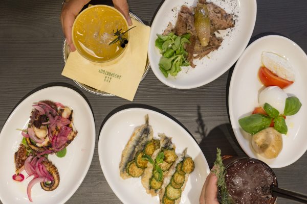 L’offerta è attenta e versatile. Ci sono infatti due menù uno h24 da sfogliare per spuntini, aperitivi, merende e poi l’altro, quello à la carte, per la cena. Insomma una stessa chiave per aprire le porte della fame di ogni genere, da qui il nome Passpartout.