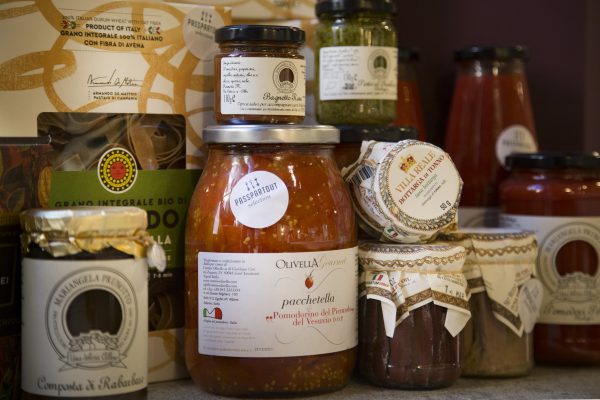All’entrata domina un bel bancone con molte bottiglie interessanti dove i bartender offrono cocktail non banali. Con gli aperitivi vengono serviti salumi e formaggi selezionati accuratamente con molti prodotti DOP, mentre le confetture e la giardiniera (strepitosa) sono homemade. Molto interessante la “bottega” dove è possibile acquistare dei rari prodotti artigianali frutto della ricerca appassionata, come delle conserve di pomodoro del piennolo o quelle di alici, tonno, bottarga di Sciacca. Anche la pasta e l’olio proposti sono di altissima qualità.