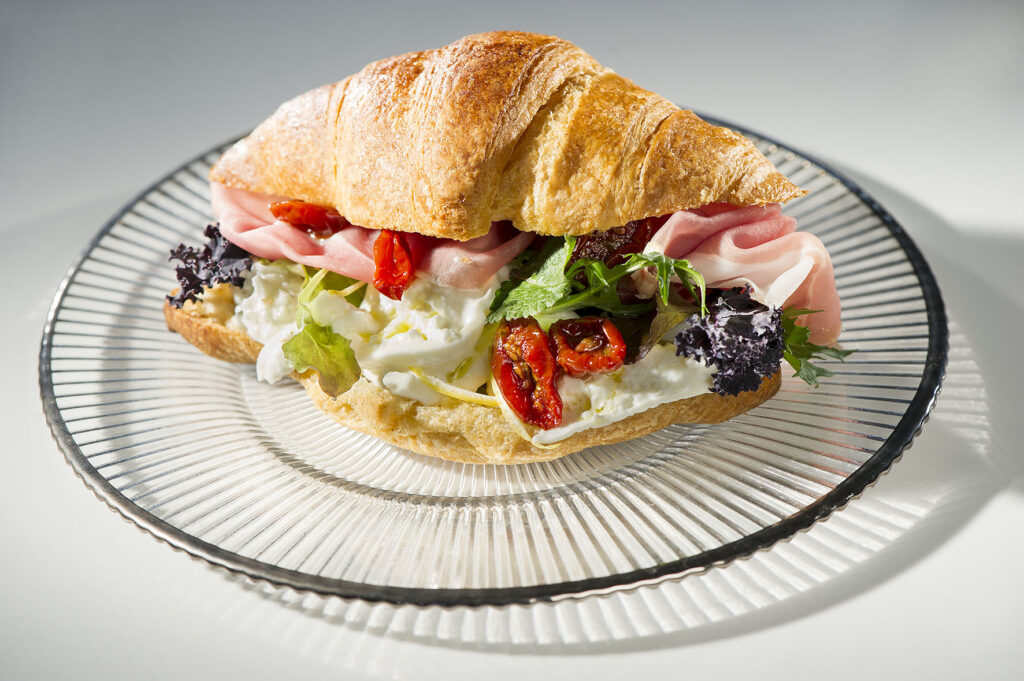Croissant salato, San Daniele, stracciatella e scorza di limone