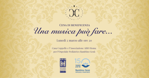 Lunedì 2 marzo alle ore 20 si svolgerà la cena di beneficenza organizzata dal ristorante Casa Coppelle e da ABIO Roma – ODV, associazione beneficiaria del ricavato che sarà interamente destinato al progetto “Una Musica Può Fare…”: iniziativa di empowerment terapeutico promossa dall’Ospedale Pediatrico Bambino Gesù.